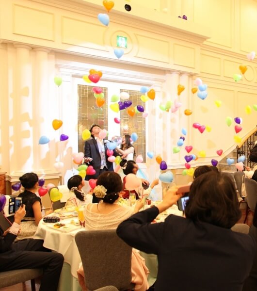 天井からバルーンがゆらゆらと舞い降りてくるんです♪