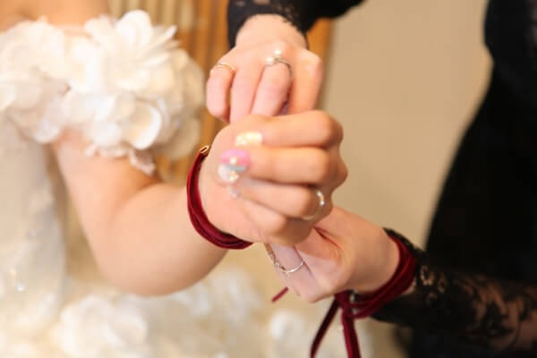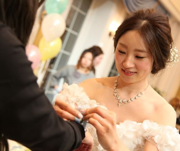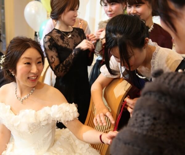 想いを込めて作ったリストブーケを一つずつ結んでいき、