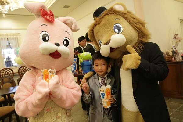 ルーチェ君と一緒に新郎新婦のおふたりを