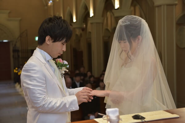 バージンロードを歩いた後は2人で祭壇にて誓います