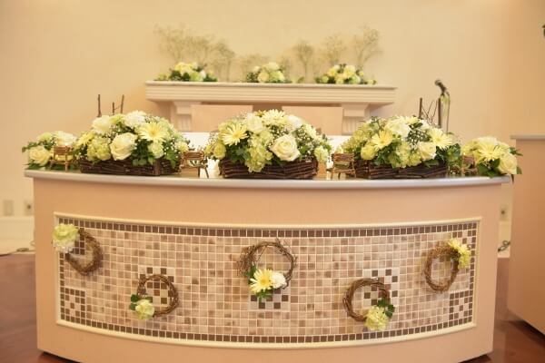 している為、白いゲストテーブルで緑のお花が