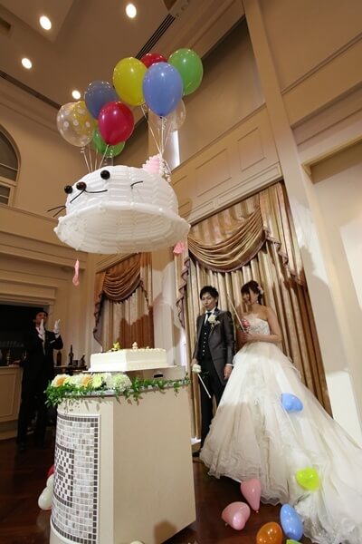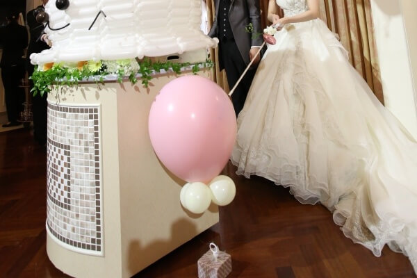 このバルーンの両脇にあるバルーンを新郎新婦が