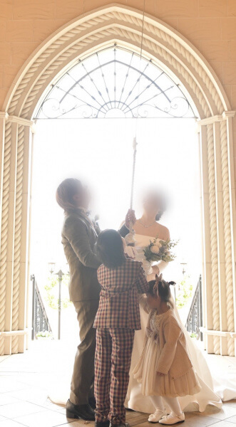 退場の後、チャペルの鐘を鳴らし