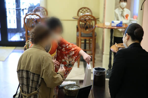 受付でゲストの皆様が楽しい時間を過ごしていると