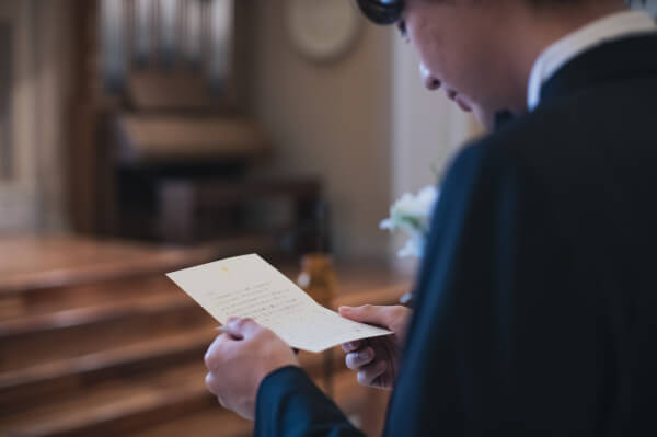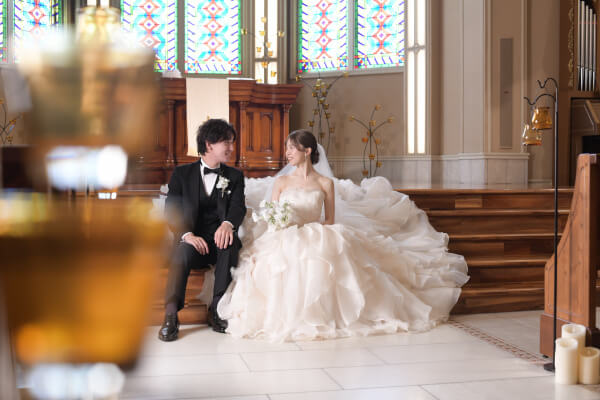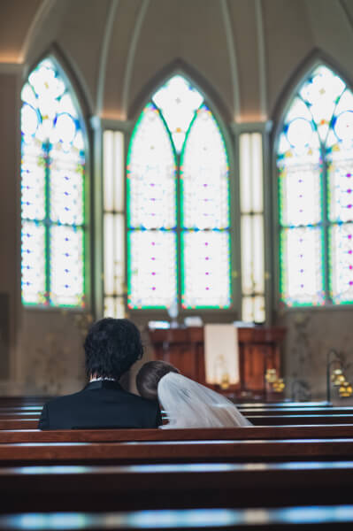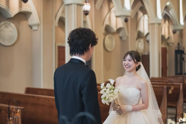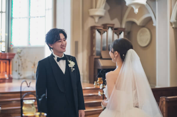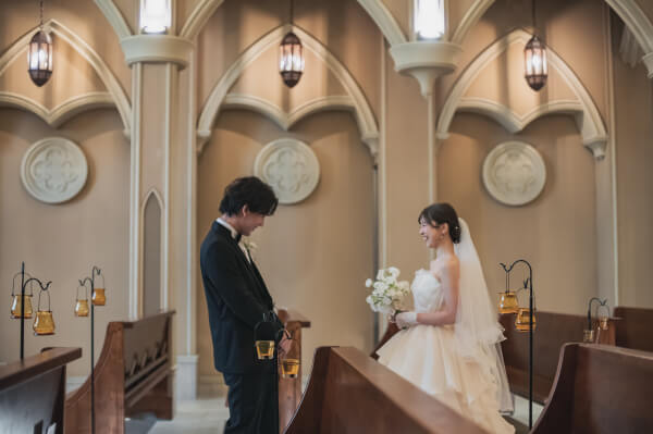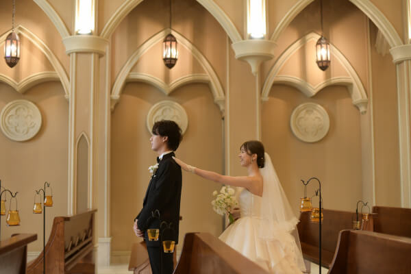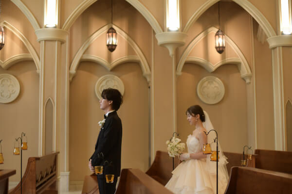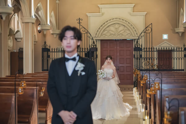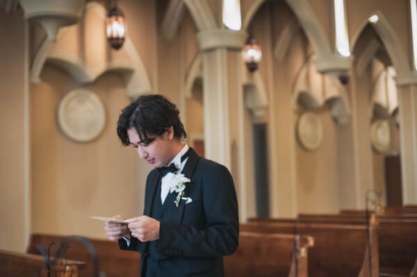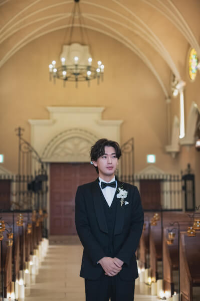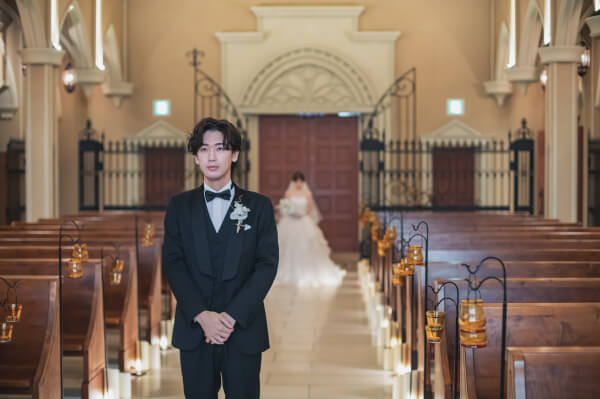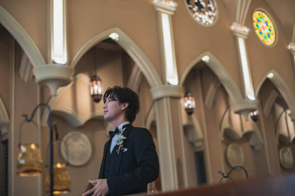 チャペルの中で実奈さんを待つ孝太さん